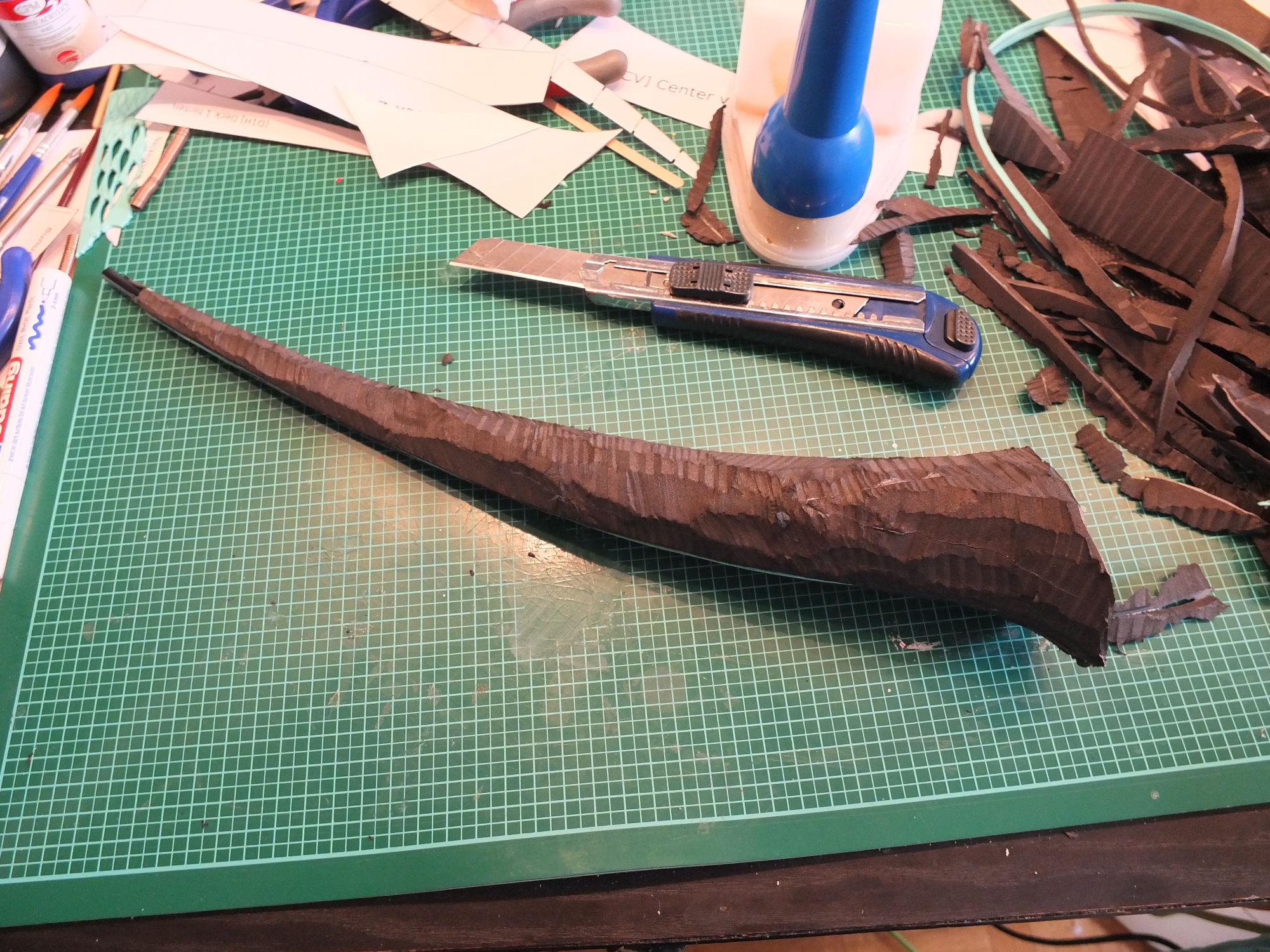 Als die Lagen fest verbunden waren habe ich zuerst mit einem scharfen Messer alles in Form gebracht und anschließend den Dremel ausgepackt.